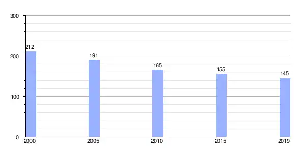 | Gráfica de evolución demográfica de Penarrubia (parroquia) entre 2000 y 2019 |