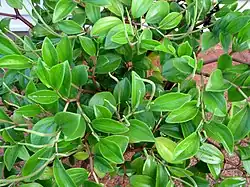 La planta es una hierba perenne que crece hasta un metro de altura con hojas carnosas de hasta 7 centímetros de largo por 5 de ancho, dispuestas de forma opuesta como un zigzag. La inflorescencia tiene hasta 16 centímetros de largo, pero solo unos pocos milímetros de ancho y está cubierta de flores diminutas, casi invisibles.[2] Está amenazada por el daño y la destrucción de la capa de humus en la que crece, la presencia de aves domésticas contribuye a su degradación, y la remoción del dosel del bosque elimina la fuente de los desechos que forman el humus.[2]