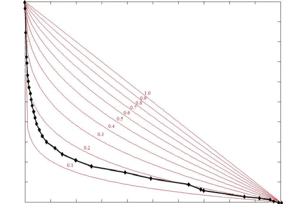 Donde vale típicamente alrededor de 0,6. Luego, invirtiendo la relación, resulta: