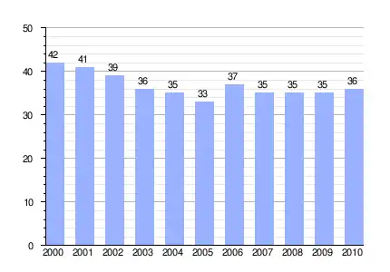 Población de derecho (2000-2010) según los censos de población del INE a 1 de enero de cada año.[6] |