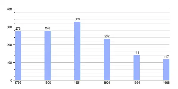 | Gráfica de evolución demográfica de Perreuse entre 1793 y 1968 |
