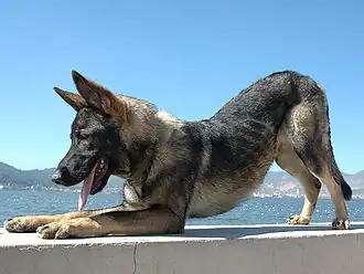 ![]() Los perros lobo de Kunmíng son similares a los pastores alemanes, pero son más altos en la parte de atrás. | ||