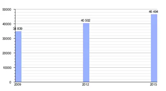 | Gráfica de evolución demográfica de Petit Bois entre 2009 y 2015 |