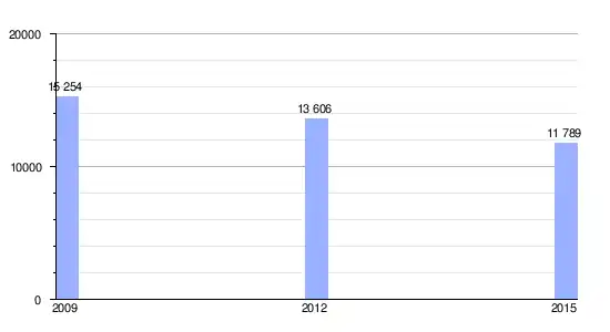 | Gráfica de evolución demográfica de Petit Bois entre 2009 y 2015 |