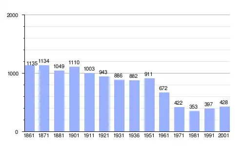 | Gráfica de evolución demográfica de Pettoranello del Molise entre 1861 y 2001 |