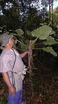 - ↑ a b c «Philodendron fragrantissimum». Tropicos.org. Missouri Botanical Garden. Consultado el 10 de agosto de 2013.