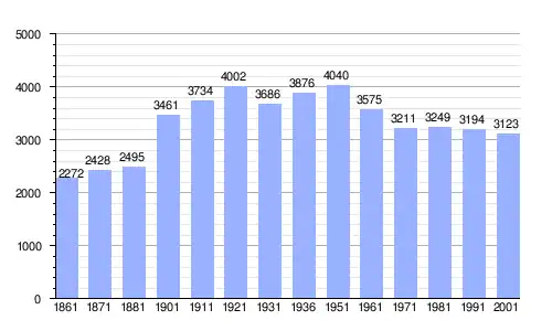 | Gráfica de evolución demográfica de Pico entre 1861 y 2001 |