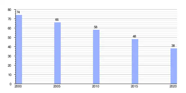 | Gráfica de evolución demográfica de Pidre (aldea) entre 2000 y 2020 |
