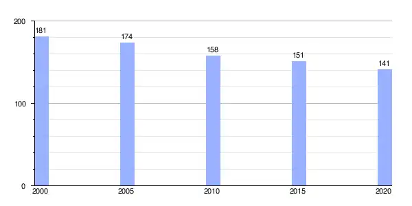 | Gráfica de evolución demográfica de Pedrafita entre 2000 y 2020 |