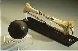 Desde entonces, los huesos de la pierna se han encerrado en una caja de vidrio[14] y, a partir de 2014, se informó que es una de las exhibiciones más solicitadas del museo.[2] Durante un tiempo en 2011, los huesos se exhibieron en Fort Detrick,[10] pero a partir de 2021 se exhibirán nuevamente en el Museo Nacional de Salud y Medicina.[9] Los huesos están unidos a un soporte de madera con puntas de metal y se exhiben junto a una bala de cañón del tipo que causó la herida.[11]