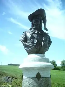 - ↑ Le 3 juillet 2007 : Dévoilement du buste de Pierre Dugua de Mons à Québec Archivado el 17 de octubre de 2013 en Wayback Machine., au pied du «Mont du Gas» [sic] (le sommet local, ainsi nommé par Champlain en 1608), sur la «Terrasse Saint-Denis», désormais renommée «Terrasse Pierre-Dugua-De Mons».