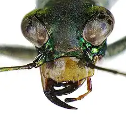 En partes de la boca, el labio es una estructura cuadrúpeda, aunque se forma a partir de dos anillos condensados maxilares secundaria. Esto puede ser descrito como el piso de la boca. Con los maxilares, ayuda con la manipulación de los alimentos durante la masticación o, en el caso inusual de la libélula ninfa que se extiende hacia fuera para jalas la presa de nuevo a la cabeza, donde las mandíbulas pueden comerlo. El labio es similar en estructura a la maxilar, pero con los apéndices de los dos lados fusionadas por la línea media, por lo que vienen a formar una placa de mediana. La parte basal del labio, equivalente a los Cardines maxilares y posiblemente incluyendo una parte del esternón del segmento labial, se llama la postmentum. Esto puede ser subdividida en un submentum proximal y un mentón distal. Distal a la postmentum, y equivalente a los stipites maxilares fusionados, es el prementum. El prementum cierra la cavidad preoral desde atrás. Terminal, lleva cuatro lóbulos, dos glosas interiores, y dos paraglossae exterior, que se conocen colectivamente como el ligula. Uno o ambos pares de lóbulos pueden estar ausentes o pueden estar fusionados.[5]