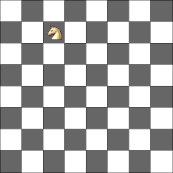 | Jinete nocturno (Nightrider) | n(1/2) | Un corredor que mueve cualquier número de celdas con movimientos de caballo en la misma dirección. Un Jinete nocturno en b2 en un tablero vacío, por lo tanto, puede mover a a4, c4, d6, e8, d3, f4, h5 y d1. Un peón de color opuesto en d6 puede ser capturado, pero el jinete nocturno no puede moverse más allá en esa dirección (p.ej. no puede mover a e8). Un peón en b3, por ejemplo, no tiene efecto. En los diagramas, el jinete nocturno es usualmente representado por un caballo invertido. Una de las más populares piezas mágicas. Ver diagrama abajo. | ||