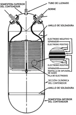 ![]() Esquemas de una batería de níquel-hidrógeno | ||