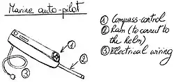 Un Piloto automático electrónico está controlado por un circuito electrónico que funciona de acuerdo con uno o más sensores de entrada, que comprenden al menos, una brújula magnética y, a veces, una veleta indicador de la dirección del viento o incluso un GPS para marcar la posición ante un punto de referencia elegido. El módulo de electrónica calcula la maniobra de dirección requerida y un mecanismo de transmisión (generalmente eléctrico, aunque puede ser hidráulico en sistemas más grandes) hace mover el timón de dirección de acuerdo con las desviaciones del rumbo correcto.