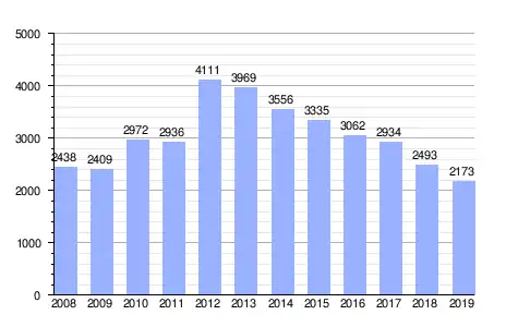 | Gráfica de evolución de deuda viva del Ayuntamiento de Pinos Puente entre 2008 y 2019 |
