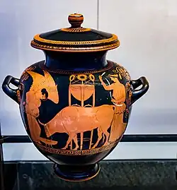 - ↑ Martin Robertson (2024). The Art of Vase-Painting in Classical Athens. Cambridge: Cambridge University Press. p. 195. ISBN 978-10-0931-594-4.