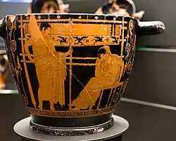 - ↑ a b Beth Cohen (2006). The Colors of Clay: Special Techniques in Athenian Vases (en inglés). Los Angeles: Getty Publications. p. 157. ISBN 978-08-9236-942-3.