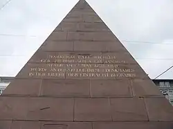 Aquel monumento sería reemplazado, 16 años más tarde, por una edificación piramidal de piedra diseñada por el arquitecto Friedrich Weinbrenner (el arquitecto de la ciudad de Karlsruhe) al estilo neoclásico, que ha sobrevivido hasta el día de hoy (no viéndose afectada por los extensos bombardeos de la Segunda Guerra Mundial).[2] El monumento original de madera fue trasladado a la nueva ubicación de la iglesia.