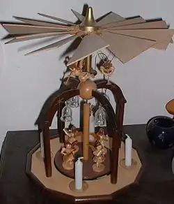 La Pirámide de Navidad (en alemán Weihnachtspyramide) es un elemento decorativo navideño tradicional típico de los Montes Metálicos (en alemán Erzgebirge) en Alemania y República Checa. Consiste en una especie de pequeño carrusel elaborado en madera y decorado con diferentes motivos navideños en su interior (ángeles, belén, etc). La pirámide contiene una hélice en su parte superior que se propulsa, haciendo girar el carrusel, mediante las corrientes de convección térmica que genera el calor de cuatro pequeñas velas colocadas en la parte inferior.