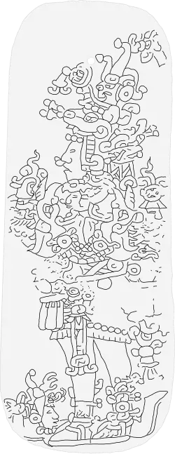 - ↑ a b Spinden, Herbert Joseph (1976). A Study of Maya Art, Its Subject Matter and Historical Development. England: Dover Publications. pp. 172-173. ISBN 978-0-486-21235-7.