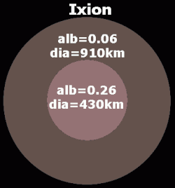 | Plutón | −0.7 | 2329 | 64 | 13100 | −0.8 | 2368 | 66 | 1921 | 9605 | aceito (medido) | resonancia 2:3 | 2368 |