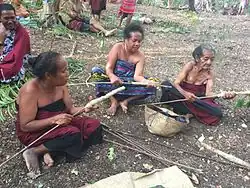 La tela de corteza se usó principalmente para la ropa entre los antiguos austronesios y se hace tradicionalmente con piedra característica o batidores de madera que se encuentran entre los artefactos más comunes encontrados en los sitios arqueológicos austronesios. Se han considerado numerosos restos arqueológicos de batidores de tela de corteza en el sur de China como evidencia de que las tierras natales austronesias anteriores a Taiwán estaban ubicadas en la región antes de la expansión hacia el sur de la dinastía Han, particularmente alrededor del delta del río de las Perlas. Los restos más antiguos son del sitio Dingmo en Guangxi, que data de alrededor de 7,900 BP[45] La tela de corteza siguió siendo una fuente importante de telas para la ropa en Melanesia, Polinesia y algunas partes de Indonesia. Sin embargo, ha sido reemplazado principalmente por ropa de fibra tejida en la mayor parte de la isla del sudeste asiático y Micronesia.[17]