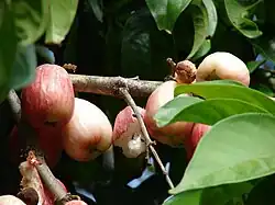 - ↑ a b Whistler, W. Arthur; Elevitch, Craig R. (2006). «Syzygium malaccense (Malay apple) (beach hibiscus)». En Elevitch, Craig R., ed. Traditional Trees of Pacific Islands: Their Culture, Environment, and Use. Permanent Agricultural Resources (PAR). pp. 41-56. ISBN 9780970254450.