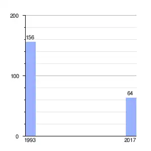 | Gráfica de evolución demográfica de Platanal entre 1993 y 2017 |