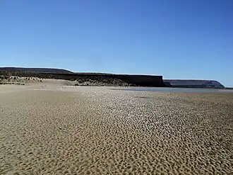 Esta playa es integrante de un sistema de 7 playas de arena fina. Este sistema se halla en el golfo San Jorge y es de especial importancia, dado que tanto hacia el sur como el norte las demás playas son de ripio o composición similar. Esta playa, junto con sus vecinas que la rodean sufren las limitaciones climáticas como bajas temperaturas fuera de la temporada veraniega y la intensidad de los vientos que suelen azotarlas con velocidades diversas. Estos dos fenómenos naturales suelen cobrarse víctimas, dado que todas las playas cercanas no cuentan con guardavidas o similares servicios de auxilio.[1]