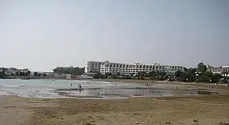Es una amplia playa en forma de concha, en cuyo extremo sur se encuentra un moderno puerto deportivo. A través de ella desembocan en el mar unos manantiales de agua dulce, procedentes de un acuífero formado en el Jurásico,[1] que le confieren una especial singularidad y belleza. La playa ofrece además una gran variedad de actividades lúdico-deportivas.[2]