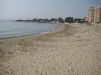 Esta playa limita al norte con el dique sur del puerto y al sur con la playa Gurugú y tiene una longitud de 240 m, con una amplitud de 46 m.