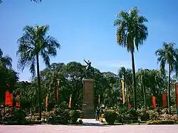 De las cuatro aristas se forman veredas diagonales que se unen en una explanada central adornada con ocho fuentes y en cuyo centro se erige una estatua ecuestre del General José de San Martín, prócer de la independencia argentina. Algunas obras de arte presentes entre los espacios verdes son las siguientes: una estatua de Eva Perón, completamente realizada en bronce sobre un pedestal; una cruz en memoria a los fallecidos en la masacre de Margarita Belén; diversos murales; y un monumento a Roma, con una estatua de Rómulo y Remo siendo amamantados por la loba en lo alto de dos columnas (obsequiado a la ciudad de Resistencia por parte de la Comunidad Italiana).