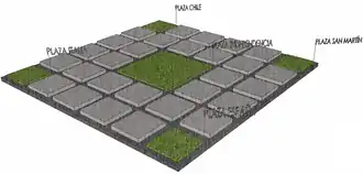 Conjuntamente con las plazas de San Martín, Chile e Italia conforman una simetría con el espacio perimetral de la plaza Independencia, que ocupa las cuatro manzanas centrales de todo su ámbito.[1]