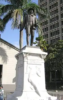 Posteriormente, el 6 de mayo de 1920, la Asamblea Departamental de Antioquia mediante la Ordenanza N.º 57, ratificó lo aprobado por la Junta del Ferrocarril sobre la erección de un monumento conmemorativo del ilustre ingeniero, estableciendo que: “el monumento expresado se levantará en la Plaza de Cisneros de esta ciudad”. Dicha Junta procedió a dar cumplimiento a la ordenanza y para ello encomendó la elaboración de la estatua al artista antioqueño Marco Tobón Mejía, quien vivía en aquel momento en París.[1]