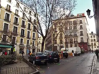 En ella estuvo el establecimiento fundado en 1621 como Hostería Española, luego más conocido como Casa Botín, y visitado allí por Répide en la década de 1920.[5] Y en el número 12, esquina a San Felipe Neri, estuvo la Antigua Casa Marin, una tienda de todo y para todos, similar al que fuera establecimiento de fieltros y ollería, que en inicio del siglo xxi conserva los rotulos de Arca de Noé. Barco de la Abundancia, en el número 3. También se menciona en esta plazuela la tienda de vinos de Montilla que tenía entre sus ilustres parroquianos al torero Lagartijo.[5] En el número 9, y en lo que fuera al parecer una de las más antiguas tahonas de la Villa, está el “museo del pan gallego”, despacho y horno de pan artesano, cuya primera licencia se documenta en 1904, y horno de leña de la primera mitad del siglo xx.[6]