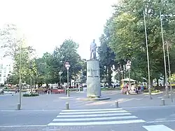 ![]() Pileta de la plaza, en el centro de ésta es apreciable el escudo chileno, que, en vez de llevar al huemul, tiene grabado un caballo. | ||