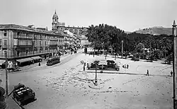 Durante los años 50, la plaza de la Marina en Málaga vivió una transformación urbana radical. Se demolieron edificios situados entre las calles Molina Lario y Sancha de Lara, eliminando antiguas viviendas construidas sobre la muralla árabe. Mientras se decidía el uso definitivo de estos terrenos, se usaron como espacios recreativos donde se organizaron espectáculos teatrales, circos y boxeo, reflejando el carácter dinámico de la zona. En esos mismos terrenos se construyeron edificaciones significativas, bajo la dirección del arquitecto Juan Jáuregui Briales, como la sede de la Caja de Ahorros de Ronda, el nuevo palacio de la Diputación y modernos cafés, que consolidaron a la plaza como un núcleo social y cultural. Además, se levantó el edificio de La Equitativa y se instalaron aquí los primeros semáforos de toda la provincia de Málaga.[4]