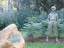 La pieza fue recuperada un cuarto de siglo más tarde por Radio Barcelona, que llegó a un acuerdo para cederla al Ayuntamiento de Barcelona a cambio que el consistorio la ubicase en un jardín público, tal y como inicialmente había sido proyectada. Su emplazamiento definitivo fueron los jardines de Plaza de la Sagrada Familia, donde se inauguró el 12 de noviembre de 1961.[25][26] La placa que actualmente acompaña a la escultura fue añadida en 1983 por la Asociación de Vecinos de la Sagrada Familia.[24]