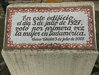 El Plebiscito de Cerro Chato de 1927 fue un referendo realizado el 3 de julio de 1927 en la localidad de Cerro Chato, en Uruguay, que más allá de la finalidad por la que fue realizado —decidir la jurisdicción del pueblo, que se la disputaban tres departamentos— singularizó al Uruguay en América Latina ya que fue la primera vez que la mujer ejerció el derecho de voto.[1]