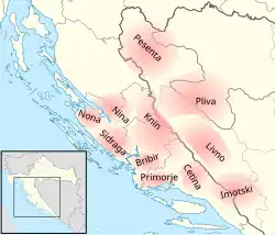 En 1366, tras defender con éxito la ciudad de Soko, el duque Vukac Hrvatinić recibió, como recompensa por su leal servicio, la parroquia de Pliva "de frontera a frontera", mediante una carta otorgada por el ban Tvrtko I. Pliva fue uno de las parroquias más extensas, abarcando las cuencas de los ríos Janj y Pliva, así como las laderas del monte Vitorog.[5]