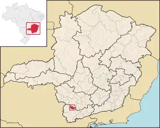 Localizado en el sur de Minas Gerais, está a 395 km de Belo Horizonte, 455 km de Río de Janeiro. El municipio es cortado por la carretera MG-179. Posee un área de 475 km² y clima tropical-templado.