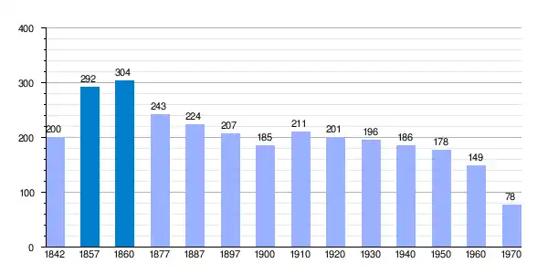 | Gráfica de evolución demográfica de Pobladura de Sotiedra[3] entre 1842 y 1970 |