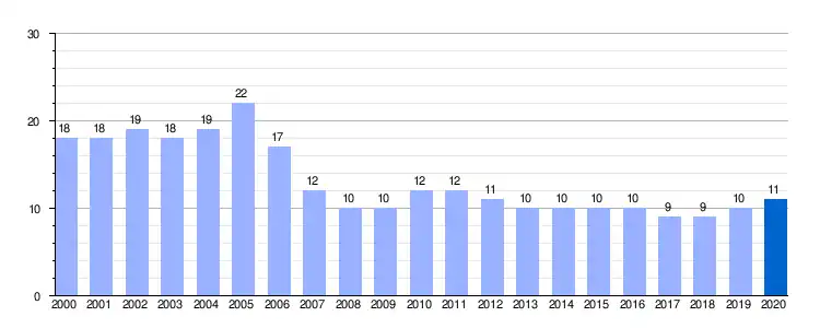 | Gráfica de evolución demográfica de Pobladura de Sotiedra entre 2000 y 2020 |