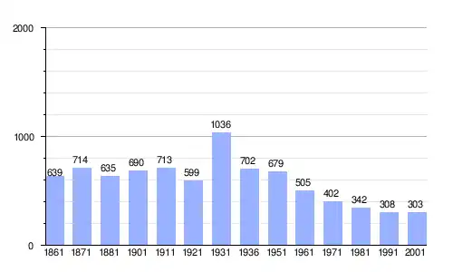 | Gráfica de evolución demográfica de Poggio San Vicino entre 1861 y 2001 |