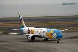El 25 de junio de 2023, All Nippon Airways presentó un Boeing 777-300ER (JA784A) con una imagen de Pokémon pintada llamado «Eevee Jet NH». Operará en rutas de vuelos de larga distancia de EE. UU. y Londres desde su base en el aeropuerto Haneda de Tokio.[25]