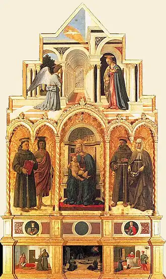 Este retablo fue realizado por Piero della Francesca en Perugia, 1467, por cuenta de las hermanas terciarias del convento de San Antonio. Actualmente se encuentra en la Galería Nacional de Umbría.