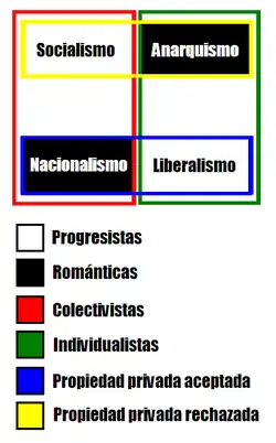 - ↑ a b c d e Andrés Ariel Luetich. Clasificación de las ideologías políticas. Actas de la Academia Luventicus 2002 (1): 1-10. Rosario, 2002. ISSN 1666-7581.