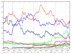 | Resultados mensuales de las elecciones nacionales | Resultados mensuales de las elecciones nacionales para los partidos pequeños. |
