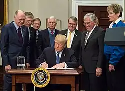 - ↑ a b Spaceflight Now, "Trump signs order reviving long-dormant National Space Council"